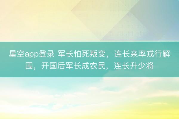 星空app登录 军长怕死叛变,连长亲率戎行解围,开国后军长成农民,连长升少将