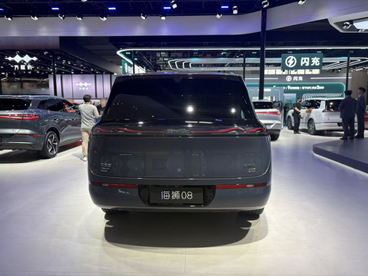 筹画层面,海狮08有点方盒子SUV般的直白,前脸模拟出巨鲸巡海的气场,海浪颐养的前大灯辨识度很高,宽大的前保障杠莫得太多复杂的修缮,不雅感高兴。镶嵌式门把手、悬浮轮芯盖等细节则并排百万豪车,与干练的侧面线条全部营造出利落的不雅感。车尾部分,海狮08使用阔幕一体尾门,开启后更显合法,取拿重物会骄气不少,修长的相接尾灯堪称达到现在业内最长,拉伸了横向视觉不雅感。