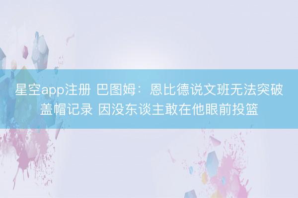 星空app注册 巴图姆:恩比德说文班无法突破盖帽记录 因没东谈主敢在他眼前投篮