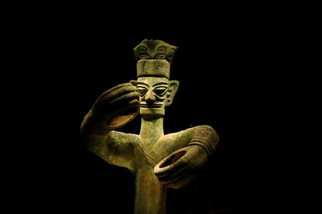 多元文化身分:新出土的顶尊跪坐东说念主像,将三星堆独到东说念主像与华夏青铜尊相聚首,直不雅体现了文化会通。