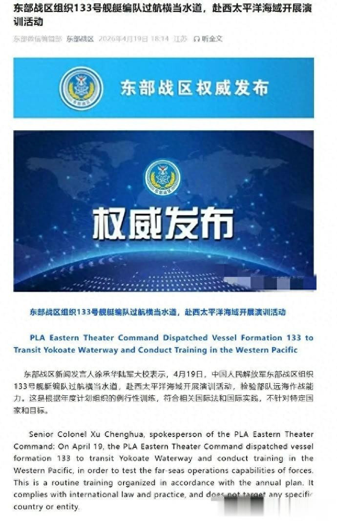 东部战区今天发了个音书,径直刷屏了。4月19号,我们的133号舰艇编队,也等于那艘052DL“包头舰”,大大方方地过了横当水说念,直奔西太平洋搞演训去了。官方说法是“历练戎行远海作战能力”,属于年度狡计里的例行西宾,妥贴外洋法,并不针对谁。