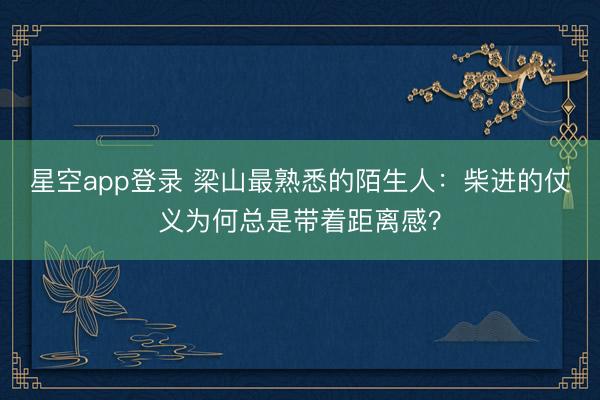 星空app登录 梁山最熟悉的陌生人:柴进的仗义为何总是带着距离感?