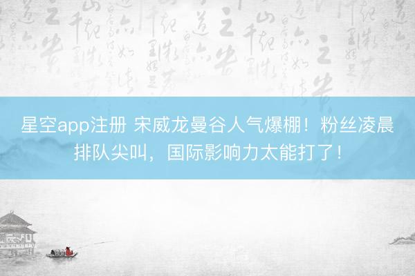 星空app注册 宋威龙曼谷人气爆棚!粉丝凌晨排队尖叫,国际影响力太能打了!