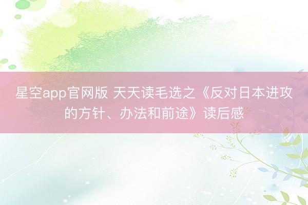 星空app官网版 天天读毛选之《反对日本进攻的方针、办法和前途》读后感