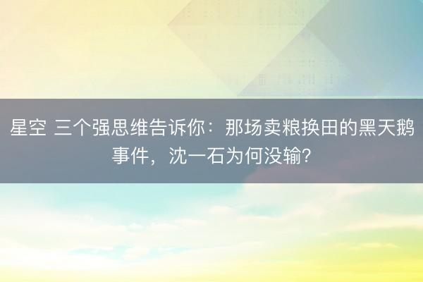 星空 三个强思维告诉你:那场卖粮换田的黑天鹅事件,沈一石为何没输?