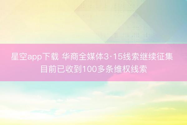 星空app下载 华商全媒体3·15线索继续征集 目前已收到100多条维权线索