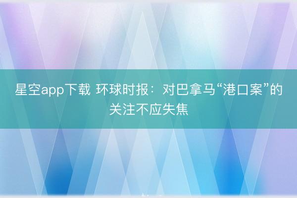 星空app下载 环球时报:对巴拿马“港口案”的关注不应失焦