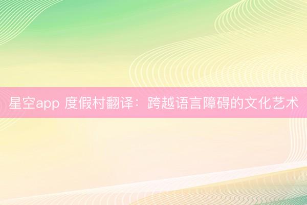 星空app 度假村翻译:跨越语言障碍的文化艺术