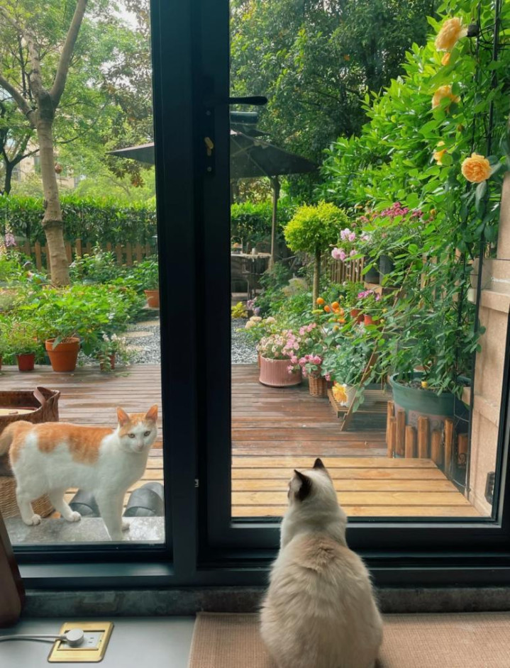 隐秘方面,我沿着院墙种了爬藤植物,既好意思不雅又梗阻视野,室内也用了透光不透影的窗帘,问题不大,但照实需要花心念念派遣。