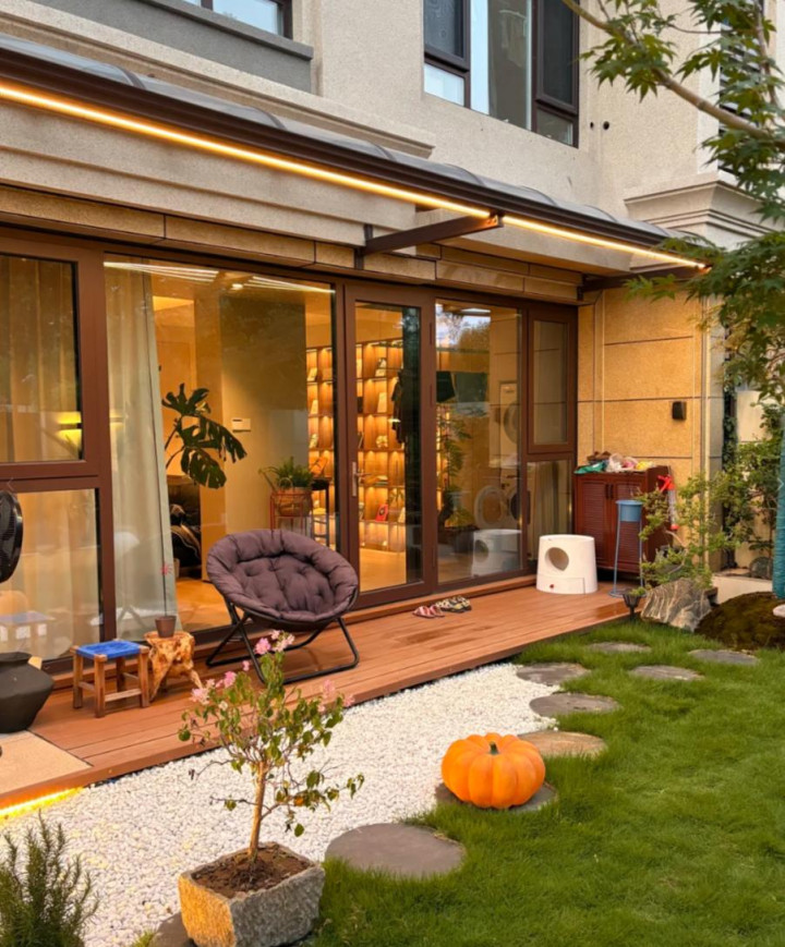 一楼的价钱平庸比中间楼层和顶楼更友好,况且往商业附送一块院子。这块地儿,看起来不大,却实的确在地拓展了糊口的限度。
