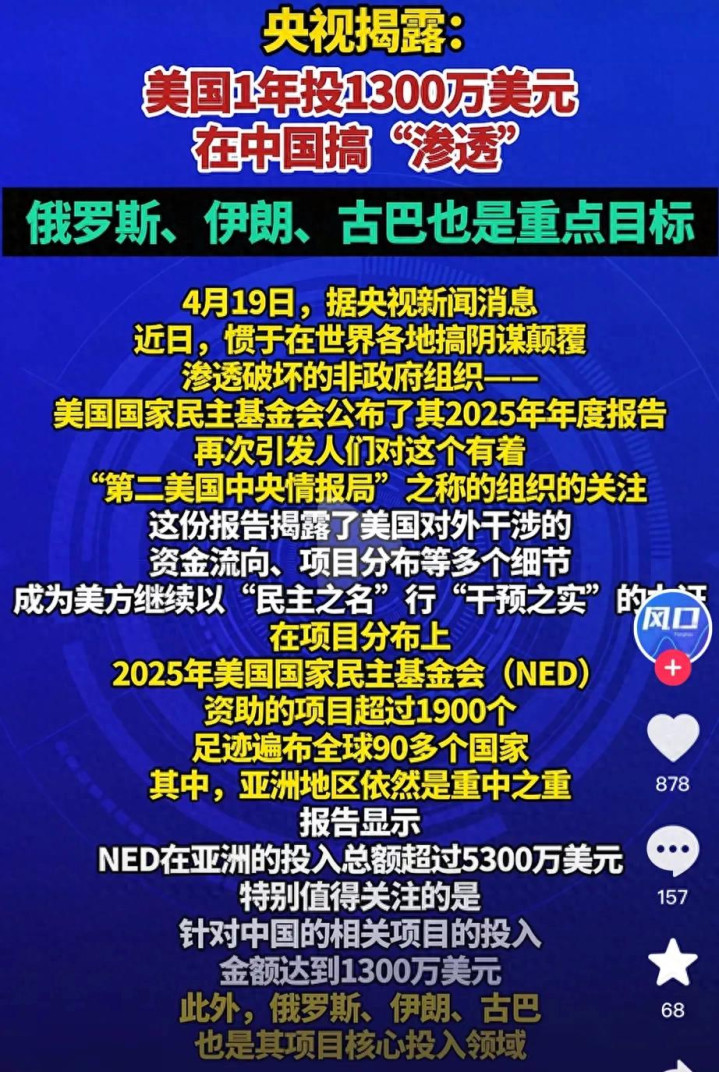 近日,好意思国国度民主基金会(NED)公布了其2025年年度证明,这份被外界称为“过问阶梯图”的文献,再次将这家有着“第二中情局”之称的机构推优势口浪尖。