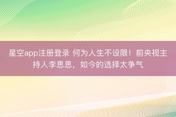 星空app注册登录 何为人生不设限!前央视主持人李思思,如今的选择太争气