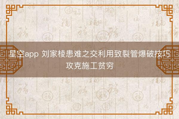 星空app 刘家棱患难之交利用致裂管爆破技巧攻克施工贫穷