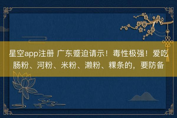 星空app注册 广东蹙迫请示!毒性极强!爱吃肠粉、河粉、米粉、濑粉、粿条的,要防备