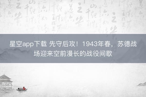星空app下载 先守后攻!1943年春,苏德战场迎来空前漫长的战役间歇