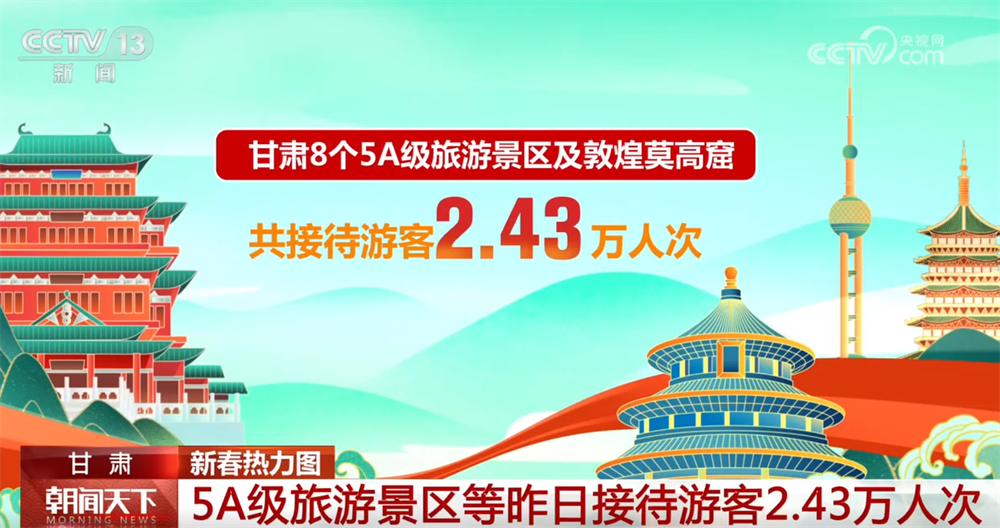 记者从甘肃省文旅厅了解到,2月16日,甘肃沐日阛阓以省亲游、附进游、乡村游、民风游为主,甘肃全省8个5A级旅游景区和敦煌莫高窟共接待旅客2.43万东说念主次。