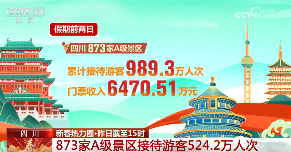 假期前两日,四川纳入统计的873家A级景区累计接待旅客989.3万东说念主次,门票收入6470.51万元。