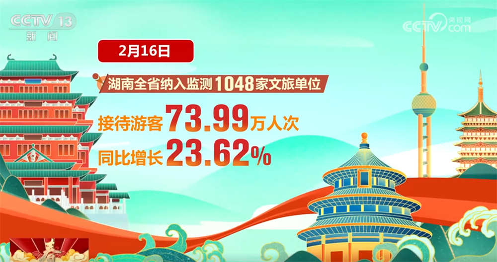 湖南全省纳入监测的1048家文旅单元16日接待旅客73.99万东说念主次,同比增长23.62%。
