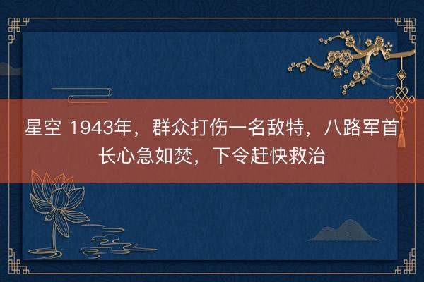 星空 1943年,群众打伤一名敌特,八路军首长心急如焚,下令赶快救治