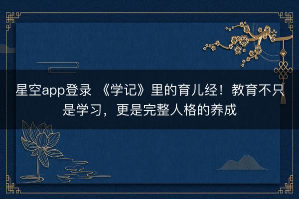 星空app登录 《学记》里的育儿经!教育不只是学习,更是完整人格的养成